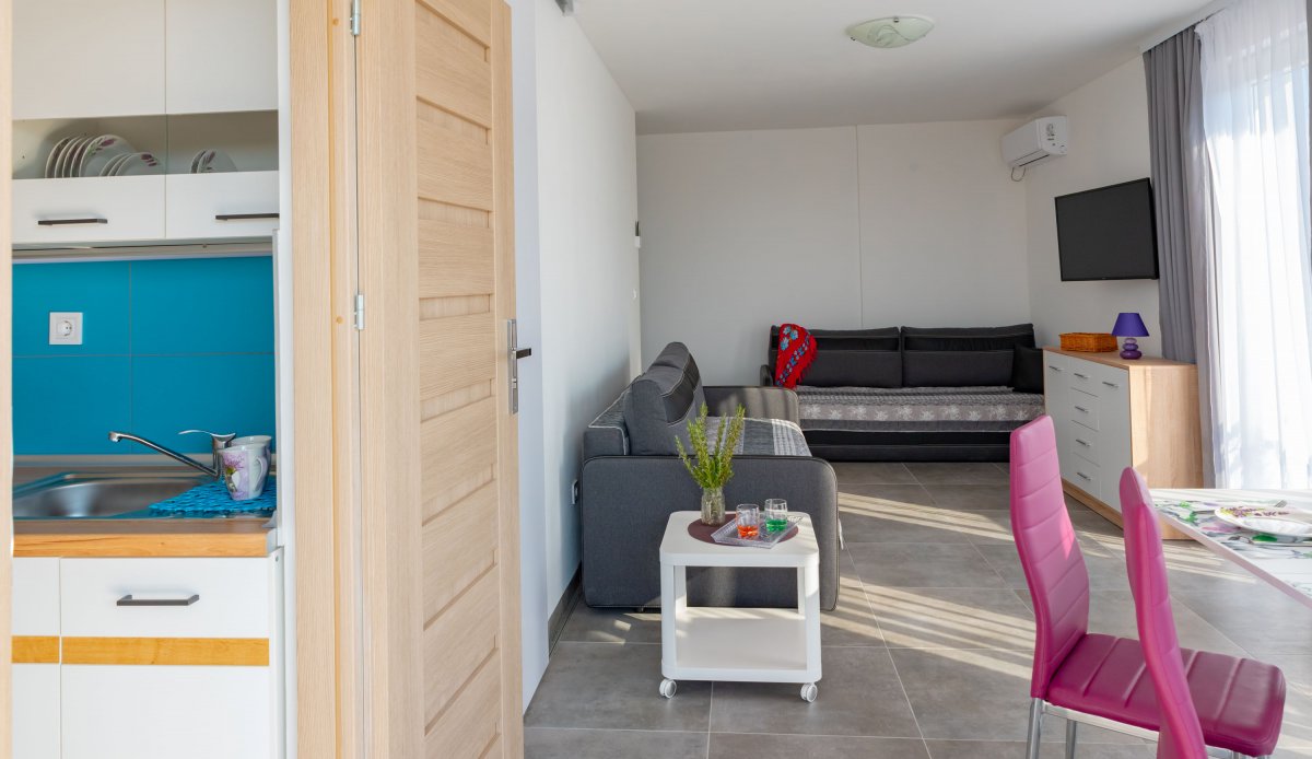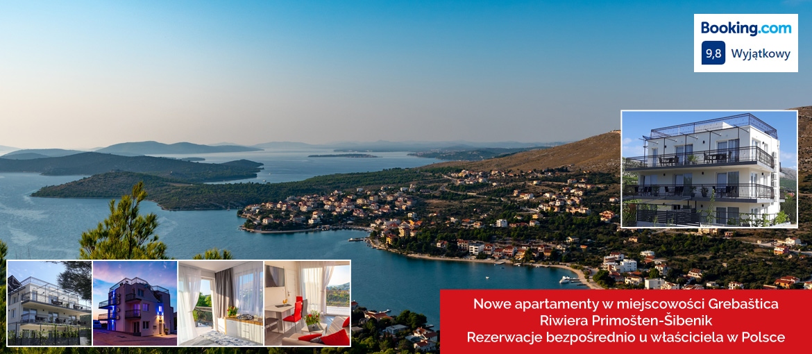 Apartmani Dalmacija**** to wybudowany w 2018 roku obiekt oferujący komfortowe czterogwiazdkowe apartamenty w kameralnej miejscowości Grebaštica, prowadzony przez polską rodzinę. Grebaštica to niewielka, miejscowość w Dalmacji, położona na Riwierze Šibenik- Primošten.